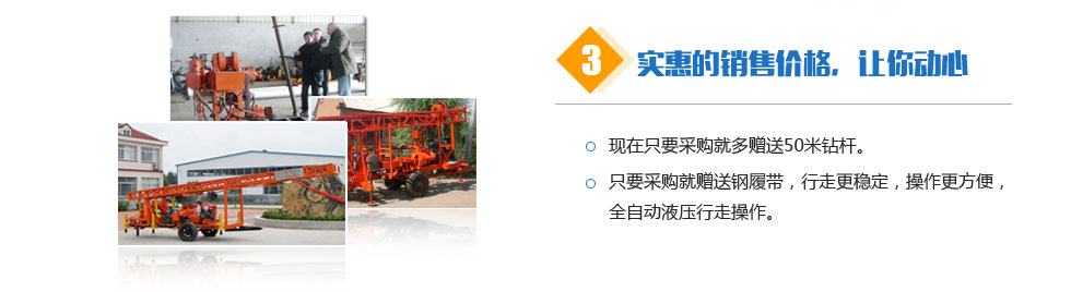 公司將繼續(xù)本著一如既往的努力,不斷發(fā)展。公司及時解決客戶生產(chǎn)過程中遇到的實際問題。創(chuàng)新文化:永不滿足,超越自我。以最完善的服務(wù)來滿足廣大用戶的需求。竭誠與您合作,共創(chuàng)美好明天。產(chǎn)品銷往全國各地,贏得用戶的一致好評,歡迎新老客戶光臨。水井鉆機(jī)公司真誠歡迎中外賓朋與本公司建立友誼。產(chǎn)品暢銷三十多個省市,深受廣大